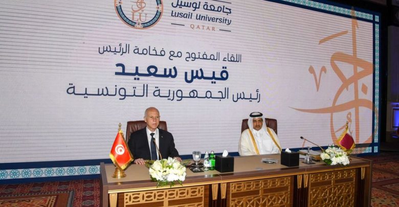 وتم الإعلان عن هذه الرابطة، في ختام لقاء مفتوح مع رئيس الجمهورية، قيس سعيد، نظمته جامعة “لوسيل”، وقدم خلاله رئيس الدولة محاضرة أمام جمع غفير من الإعلاميين والمثقفين والمسؤولين عن مؤسسات اقتصادية وإعلامية، وعدد كبير من سفراء البلدان العربية والأجنبية المعتمدين في قطر.