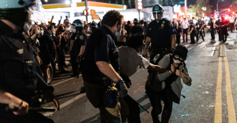 اعتقلت القوات الأمنية الأمريكية في “مينيابولس”، العشرات من الأشخاص أثناء تجمع للمطالبة بتفسير قتل الشرطة الأربعاء الماضي، شابا أمريكيا من أصول إفريقية.