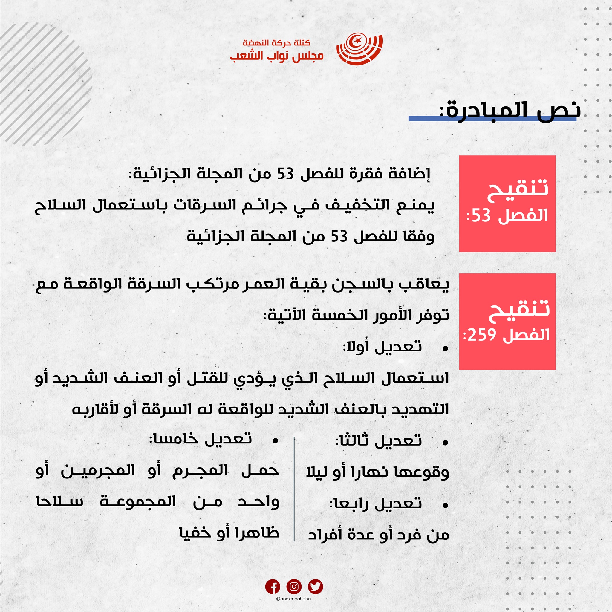 “حركة النهضة” تتقدّم بمبادرة تشريعية لتشديد العقوبات على مرتكبي “البراكاجات”