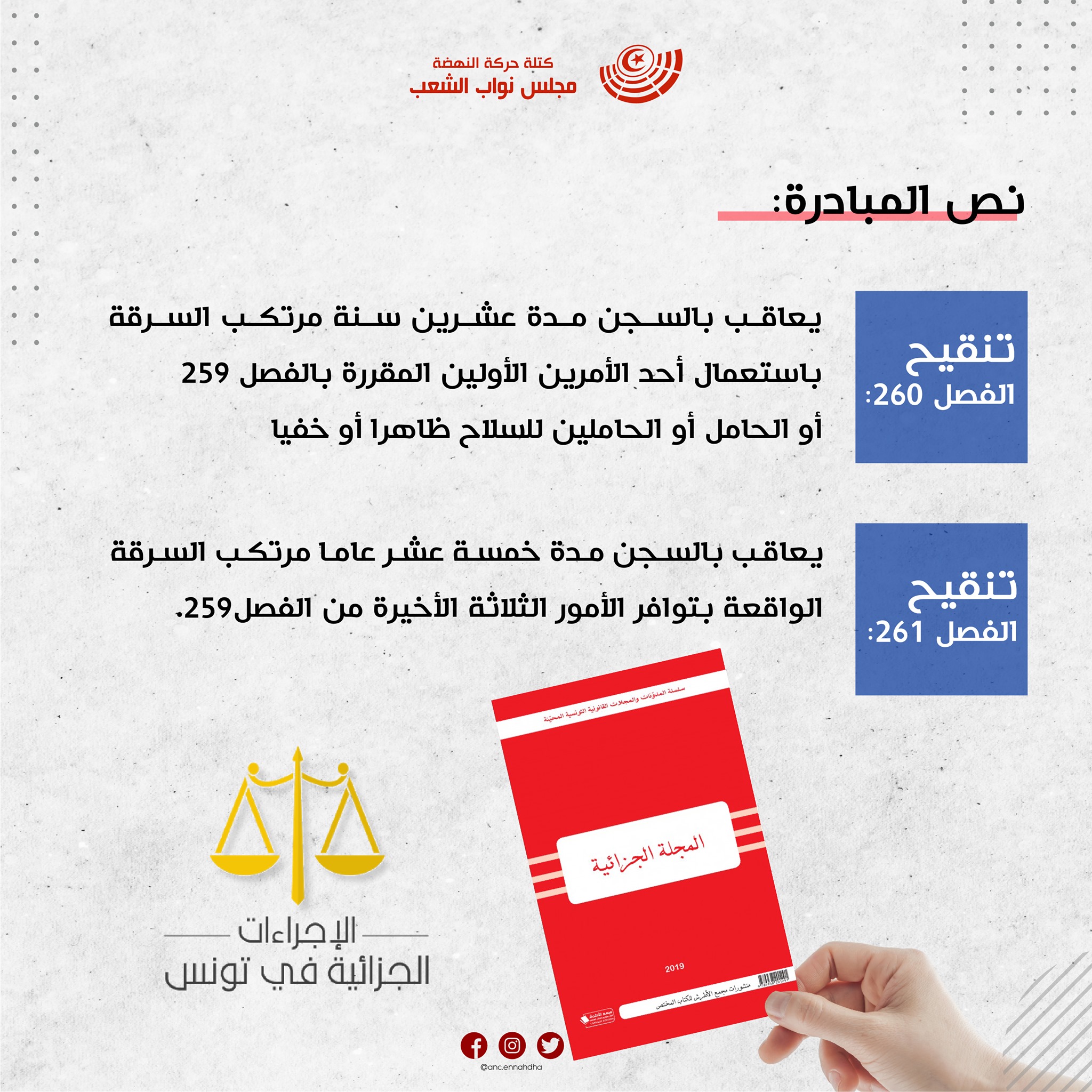 قدّمت كتلة “حركة النهضة”، مبادرة تشريعية جديدة، لتشديد العقوبات في جرائم “البراكاج”، ومنع أي ظرف تخفيف في حقّ مرتكبي هذه الجريمة.