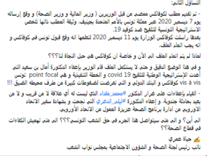 وفيما يلي نص التدوينة الخطيرة، والتي ستكون لها تداعيات وخيمة على مجابهة فيروس كورونا في تونس..