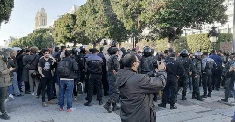 مسيرة في شارع الحبيب بورقيبة… والأمن يفرقها بالغاز المسيل للدموع