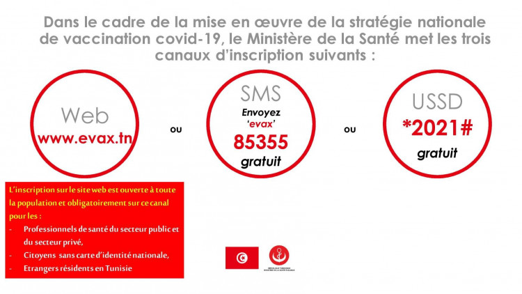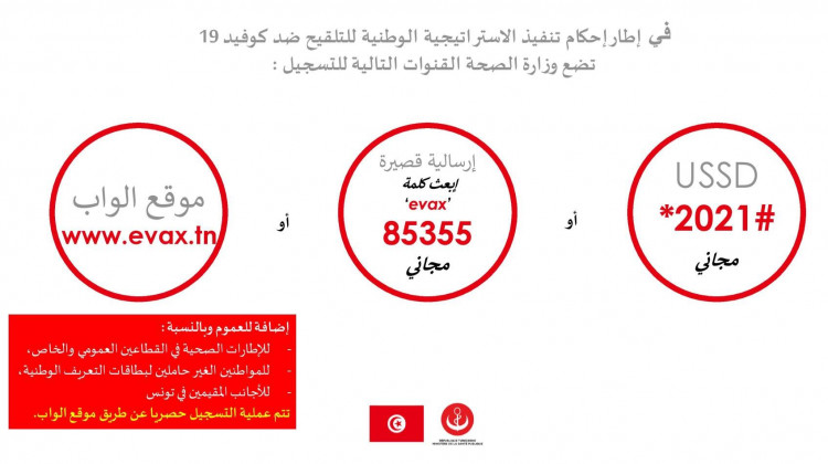 أعلنت وزارة الصحّة، أنّه في إطار أحكام تنفيذ الاستراتيجية الوطنية للتلقيح ضدّ فيروس “كورونا”، تضع على ذمّة المواطنين التونسيين عدّة قنوات للتسجيل.