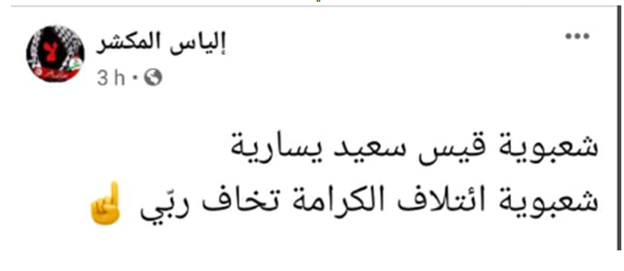 فيما قال إلياس المكشر، ردّا على إنتقدات مناوئي الرئيس:” شعبوية قيس سعيد يسارية وشعبوية إئتلاف الكرامة تخاف ربي”
