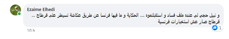 وفي نفس السياق، قال “الزعيم الهادي”، ” ونبيل حجي لي عنده ملف فساد، واستقبلتموه…. ” ثم أردف قائلا :” الحكاية وما فيها فرنسا عن طريق عكاشة تسيطر على قرطاج…. قرطاج صار عش إستخبارات فرنسية”.