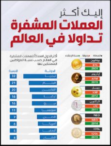في هذا الغرافيك، قائمة بأكثر العملات المشفرة تداولاً حول العالم..
