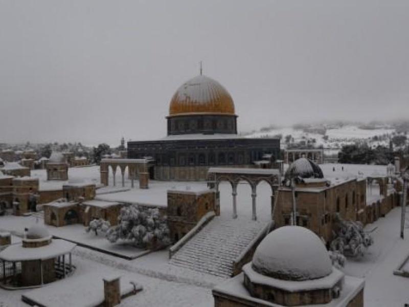 وتناقل الفلسطينيون، عبر منصات التواصل الاجتماعي، مشاهد التساقط الكثيف للثلوج، بما في ذلك على المسجد الأقصى بما فيه قبّة الصخرة المشرفة.
