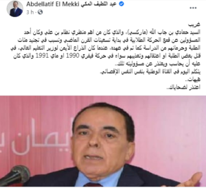 وإعتبر المكي، عضو المكتب التنفيذي لحركة النهضة، في تدوينة نشرها مساء أمس، على صفحته الرسمية بموقع التواصل الإجتماعي فيسبوك، أن ضيف الأخبار يستعمل نفس الخطاب الإقصائي الذي تعود عليه منذ زمن بن علي، واصفا إياه “بأهم المنظرين للنظام السابق، وأحد المساهمين في قمع الحركة الطلابية في التسعينات”، محمّلا إياه “مسؤولية اعتقالات وقتل الطلبة بين 1990 و1991، كما طالبه بالإعتذار عن تلك المسؤولية في ذلك الزمن.