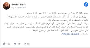 وقال بشير النفزي: “ملخص كلام رئيس الجمهورية في خطاب اليوم، أنا الزعيم… أنا الزعيم…”..