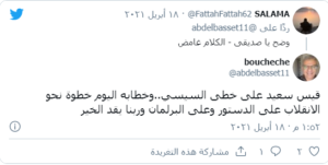واعتبر مدونون على فيسبوك، ومغردون على تويتر، أن تصريحاته “انقلابا على الدستور” و”احتكار لتأويله”، ومنهم من رأى أنه على “خطى السيسي” في مصر.