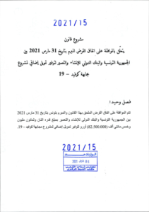 بأغلبية 139 صوتا، صادق مجلس نواب الشعب خلال أشغال الجلسة العامة التي التأمت اليوم، على مشروع قانون يتعلق بالموافقة على اتفاق قرض مبرم بين الجمهورية التونسية والبنك الدولي للإنشاء والتعمير، بتاريخ 31 مارس 2021، لتوفير تمويل إضافي لمشروع مجابهة كوفيد– 19.