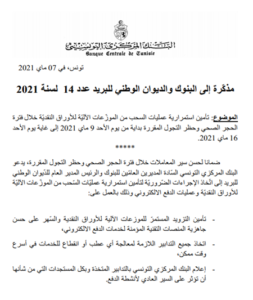 أرسل البنك المركزي اليوم، مذكرة إلى البنوك والديوان الوطني للبريد، بخصوص العمل في المؤسسات البنكية خلال فترة الحجر الصحي الشامل الذي قررته الحكومة اليوم.