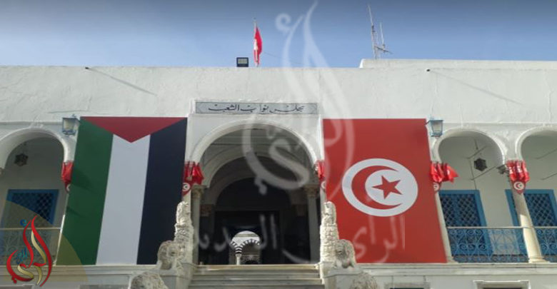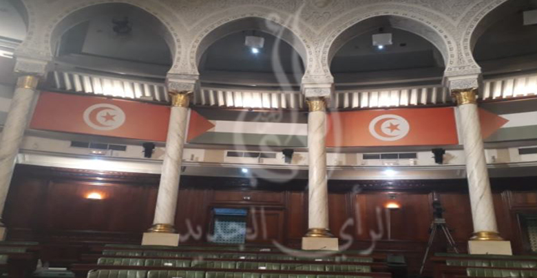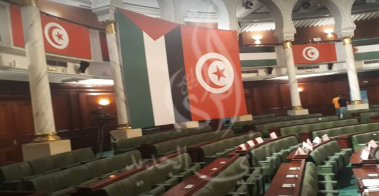 تزيّنت قبّة البرلمان، اليوم الثلاثاء، بالأعلام التونسية والفلسطينية.