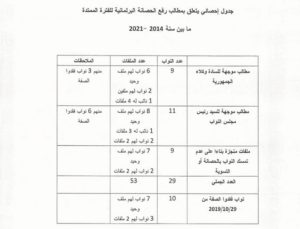 وأكّد المصدر ذاته أنّ مطالب رفع الحصانة خلال المدّتين النيابيتين (2014 – 2019 و2019 – 2024 ) بلغت 53 مطلبا تعلّق بـ 29 نائبا بخصوص ملفات ذات طبيعة مختلفة، وأنّ بعض النواب شملهم أكثر من طلب واحد.