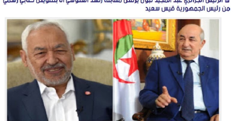 وزعمت هذه المواقع والصفحات، أنّ الرئيس الجزائري، اشترط تفويضًا كتابيًّا من الرئيس قيس سعيد، كشرط لقبول اللقاء بالغنوشي..