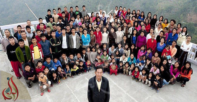وعاش “زيونا” مع عائلته، في منزل مكون من أربعة طوابق و100 غرفة في إحدى القرى الهندية، كما يعيش معه 33 حفيدًا.