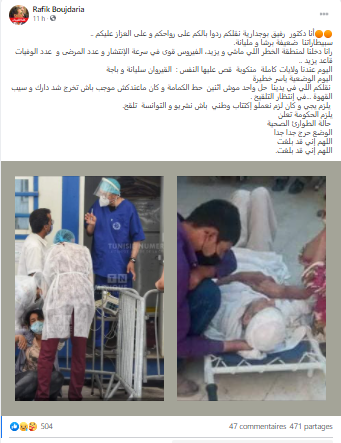 أطلق رئيس قسم الاستعجالي بمستشقى “عبد الرحمان مامي” بأريانة، الدكتور رفيق بوجدارية، “صيحة فزع”، مشيرا إلى أنه هنالك “حلّ واحد” أمامنا، وفق قوله.