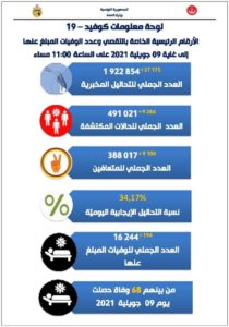 وبناء على ذلك، تجاوز عدد الوفيات، 16240 حالة وفاة، من بينهم 68 وفاة حصلت يوم 09 جويلية الجاري.