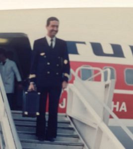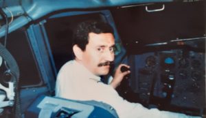 محمد المسدّي قائد طائرة سابق في شركة الخطوط التونسية وهو في غرفة القيادة