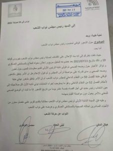 وكان 3 نواب من حركة الشعب، قد طالبوا الرئيسة الثانية لمجلس نواب الشعب سميرة الشواشي، بتقديم تقرير حول وضع الغنوشي، استنادا إلى تقرير الأطباء المشرفين على وضعه في المستشفى العسكري، وتقديم التقرير لعموم النواب، ومعاينته استنادا إلى ذلك، إما الشغور الوقتي أو النهائي.