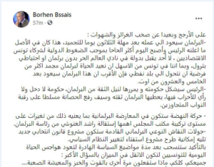 واعتبر أنّ البرلمان التونسي، سيمنح الثقة للحكومة التي سيشكلها رئيس الجمهورية، قائلا: “إنّ البرلمان لا خيار آخر له”، مشيرا إلى أنّ سيف رفع الحصانة سيكون مسلطا على النواب..