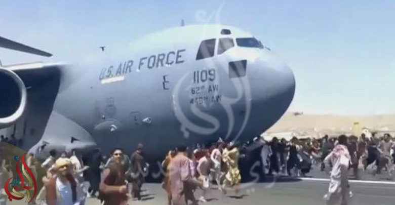 وتدفقت حشود على المطار، ومن بينهم من تعلق بطائرة نقل عسكرية أمريكية بينما كانت تسير على المدرج.