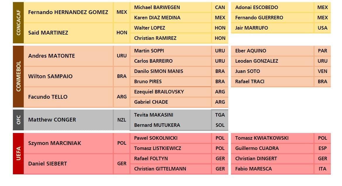 وشهدت القائمة، غيابا كلّيا للتحكيم التونسي، مقابل حضور حكام أفارقة ودوليين، مثل المصري ابراهيم السعيد والمغربي رضوان جيد والقطري عبد الله المرعي وباكاري قاساما من غمبيا والزمبي جاني سيكازوي.