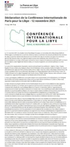 نشرت الخارجية الفرنسية أمس، مخرجات مؤتمر باريس حول ليبيا، من خلال الإعلان المطوّل (باللغة الفرنسية)، قبل أن تسحبه من منصاتها الإلكترونية..
