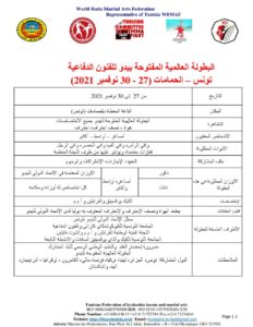 وستنتظم البطولة العالمية المفتوحة المختلطة للفنون الدفاعية، تحت رعاية الجامعة الدولية للفنون الدفاعية المختلطة وبإشراف وزارة الشباب و الرياضة، ومساهمة الجامعة التونسية للكيوكوشنكاي كاراتي، و الفنون الدفاعية و الجامعة التونسية الكيك والتاي بوكسينغ.