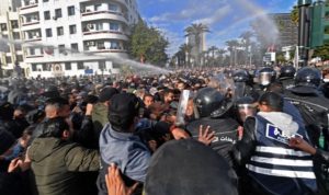 ودخل مناضلو “حزب العمال”، في صدام وتشابك بالأيدي مع قوات الأمن، التي حاولت منعهم من الوصول إلى شارع “جون جوريس” المتاخم لشارع الحبيب بورقيبة، في إطار الحصار الذي ضرب على الشارع الرئيسي في العاصمة..
