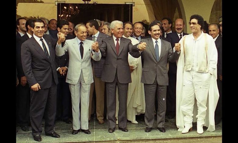 في السّابع عشر من فبراير 1989، وقّع رؤساء دول المغرب العربيّ الخمسة (الرّاحلون الأربعة: الحسن الثّاني، والشّاذلي بنجديد، ومعمّر القذّافي، وزين العابدين بن عليّ ثمّ معاوية ولد أحمد الطّايع) المعاهدة التي أنشأت – في قمّة مرّاكش – “اتّحاد المغرب العربيّ”.