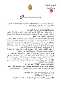 وتمّ إعفاء الوافدين الذين تتجاوز أعمارهم 18 سنة، والذين إستكملوا التلقيح من إجبارية الإستظهار بالتحاليل المخبرية شريطة الإدلاء بالشهادة، التي تثبت إستكمال التلقيح أو جواز التلقيح.