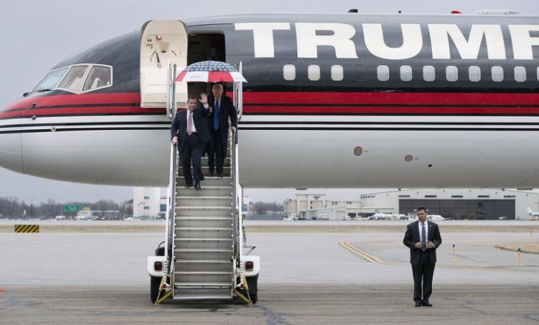 طائرة “ترامب” تضطر للهبوط.. والرئيس السابق يسرع نحو القاعة الشرفية