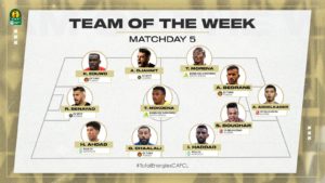 أعلن الإتحاد الافريقي لكرة القدم (الكاف)، عن التشكيلة المثالية للجولة الخامسة من مجموعات رابطة الأبطال الإفريقية.