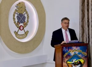 السفير الأميركي، دونالد بلوم أثناء إلقاء كلمته في رمادة