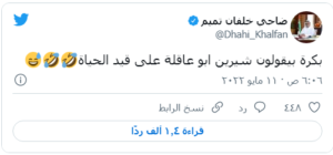 فقد غرّد المسؤول المقرب من دوائر صنع القرار الإماراتية قائلا: “بكرة بيقولون شيرين أبو عاقلة على قيد الحياة” وأضاف في تغريدته، أيقونات ضاحكة.