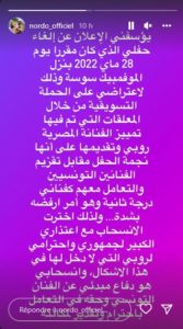 وأكد “مروان نوردو”، أن هذا التعامل يعدّ إهانة للفنان التونسي، حسب تعبيره.