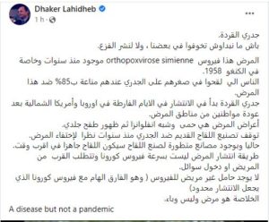 الدكتور لهيذب “يزفّ” بشرى سارّة للشعب التونسي بشأن مرض “جدري القردة”