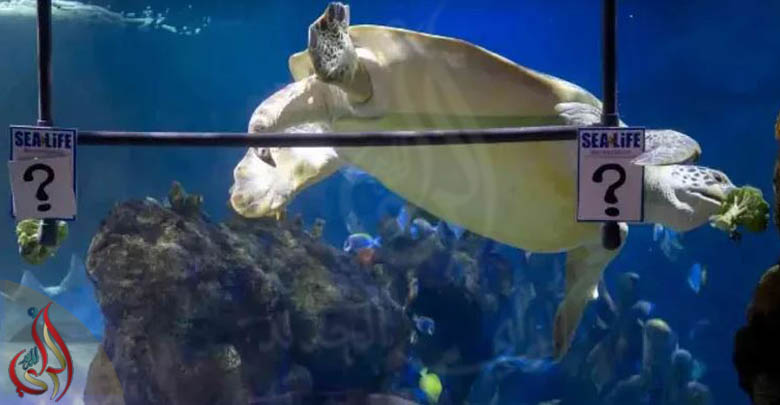 وفي اللحظة التي نزل فيها الإناءان إلى البركة التي كانت فيها السلحفاة، إتّجهت صوب الجزء الذي كان يحمل صورة فريق ليفربول.