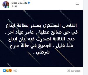 نشر الإعلامي والمحلل السياسي الحبيب بوعجيلة، منذ قليل، تدوينة عل موقع التواصل الإجتماعي “الفيسبوك”،بعد إصدار بطاقة إيداع بالسجن في حق الاعلامي صالح عطية ينتقد فيها نقابة الصحفيين.