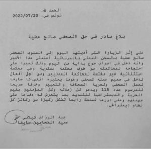 عميد المحامين ينشر بيانا للرأي العام بخصوص الصحفي المحتجز صالح عطية !