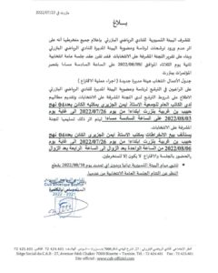 أكد النادي البنزرتي، أنه تقرّر تحديد يوم 9 أوت المقبل، كموعد جديد للجلسة العامة الإنتخابية، وذلك إثر عدم ورود ترشحات لرئاسة و عضوية الفريق.