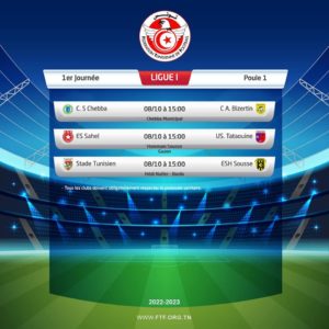 أعلنت الجامعة التونسية لكرة القدم، عن تعيينات مباريات الجولة الإفتتاحية من الرابطة الأولى، لكرة القدم.