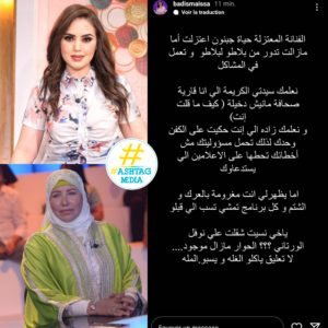 وصفت الناشطة في الجمعيات الخيرية، والفنانة السابقة، حياة جبنون، المنشطة في قناة “تونسنا”، ميساء باديس، بـ “الدخيلة على الصحافة والإعلام”.