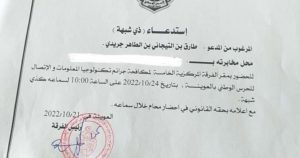 ولم تحدد أسباب التحقيق معه، في حين أنه جاء في الإستدعاء الذي تحصلت “الرأي الجديد”، على نسخة منه، أنه “ذي شبهة”.
