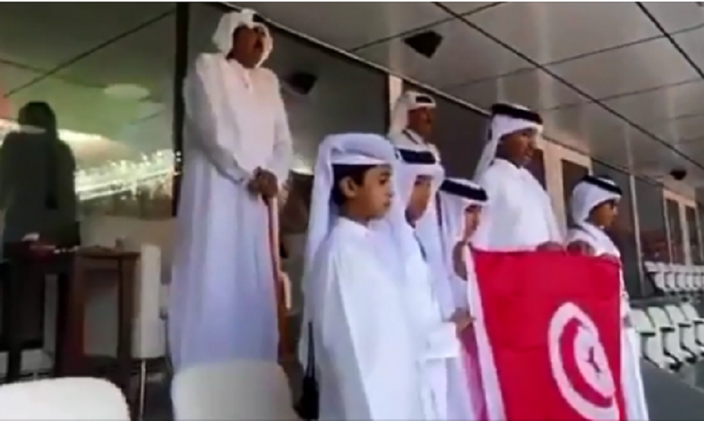 حيث ظهر في بداية المباراة، وهو يردّد النشيد الوطني التونسي قبل إطلاق صافرة المواجهة الثانية لـ “نسور قرطاج” في بطولة كأس العالم المقامة حاليا في قطر.