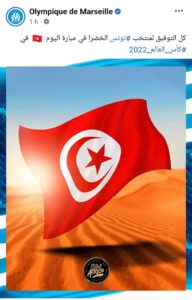 تمنّى نادي “أولمبيك مارسيليا الفرنسي”، اليوم الأربعاء، التوفيق للمنتخب الوطني التونسي، خلال مباراته الحاسمة ضدّ منتخب الديوك، وذلك لحساب الجولة الأخيرة من دور مجموعات بطولة كأس العالم المقامة في قطر 2022.