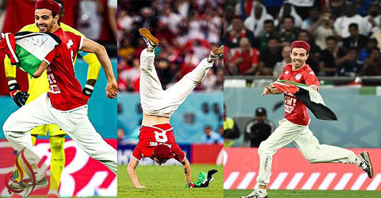 إقتحم مشجّع تونسي، أرضية ملعب المدينة التعليمية في الدوحة في الدقائق الأخيرة، من عمر مباراة منتخب تونس وفرنسا، في كأس العالم قطر 2022، حاملًا علم فلسطين ومرتديا الشاشية التونسية على رأسه.