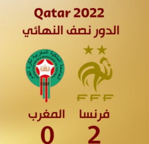 انهزم المنتخب المغربي منذ قليل، بهدفين دون ردّ، أمام المنتخب الفرنسي، في مباراة الدور نصف النهائي من كأس العالم، مونديال قطر 2022.
