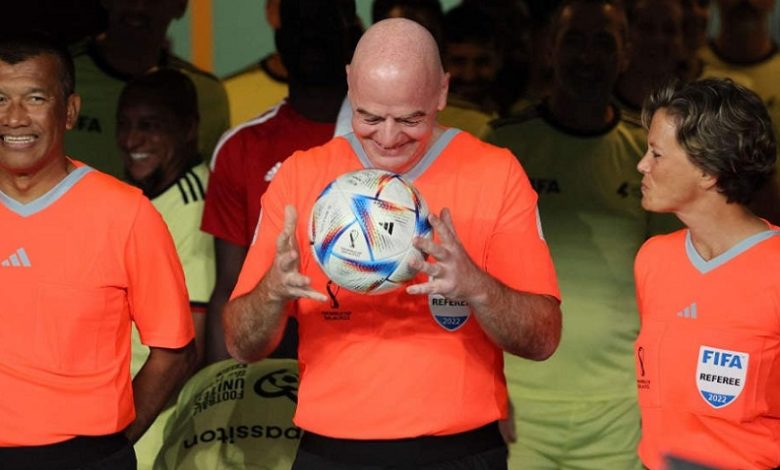 أدار السويسري جياني إنفانتينو، رئيس الاتحاد الدولي لكرة القدم “فيفا”، لفترة وجيزة مباراة استعراضية بين أساطير الساحرة المستديرة وعمال في قطر.